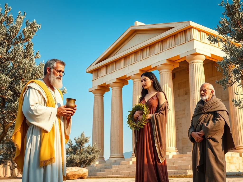 Los mitos mismos operaron como vehículos de valores: relatos sobre Zeus, Atenea o Perséfone modelaron nociones de justicia, sabiduría, ciclo agrícola y vida después de la muerte. Ejemplos concretos que interesan al investigador y al lector: la Theogonía de Hesíodo ofrece una genealogía divina esencial; los himnos homéricos conservan fórmulas litúrgicas; y los testimonios arqueológicos muestran miles de ofrendas votivas en santuarios como Delfos y Eleusis. Estos datos permiten reconstruir tanto la práctica religiosa como su función social.