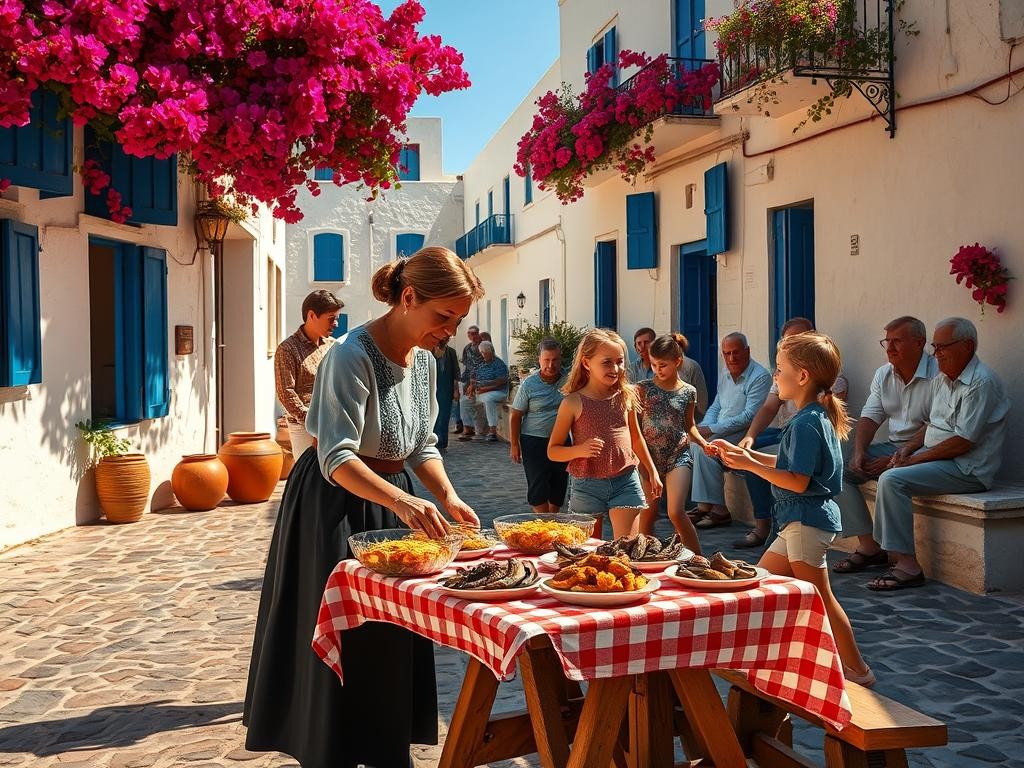 - Tradiciones griegas sobre familia, filoxenia y ocio local.