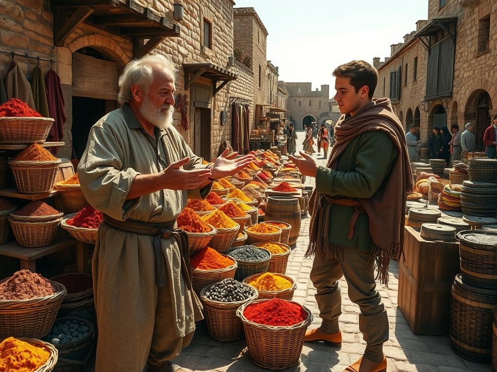 Las mercancías medievales impulsaron rutas comerciales y modelos económicos entre Europa, Asia y el norte de África. En la Edad Media, tres grupos de productos dominaron el tráfico mercantil: especias, telas y metales. Estos bienes no solo satisfacían necesidades prácticas —condimentar, vestir, fabricar herramientas— sino que configuraban jerarquías sociales, precios relativos y redes de distribución desde puertos mediterráneos hasta ferias centroeuropeas.